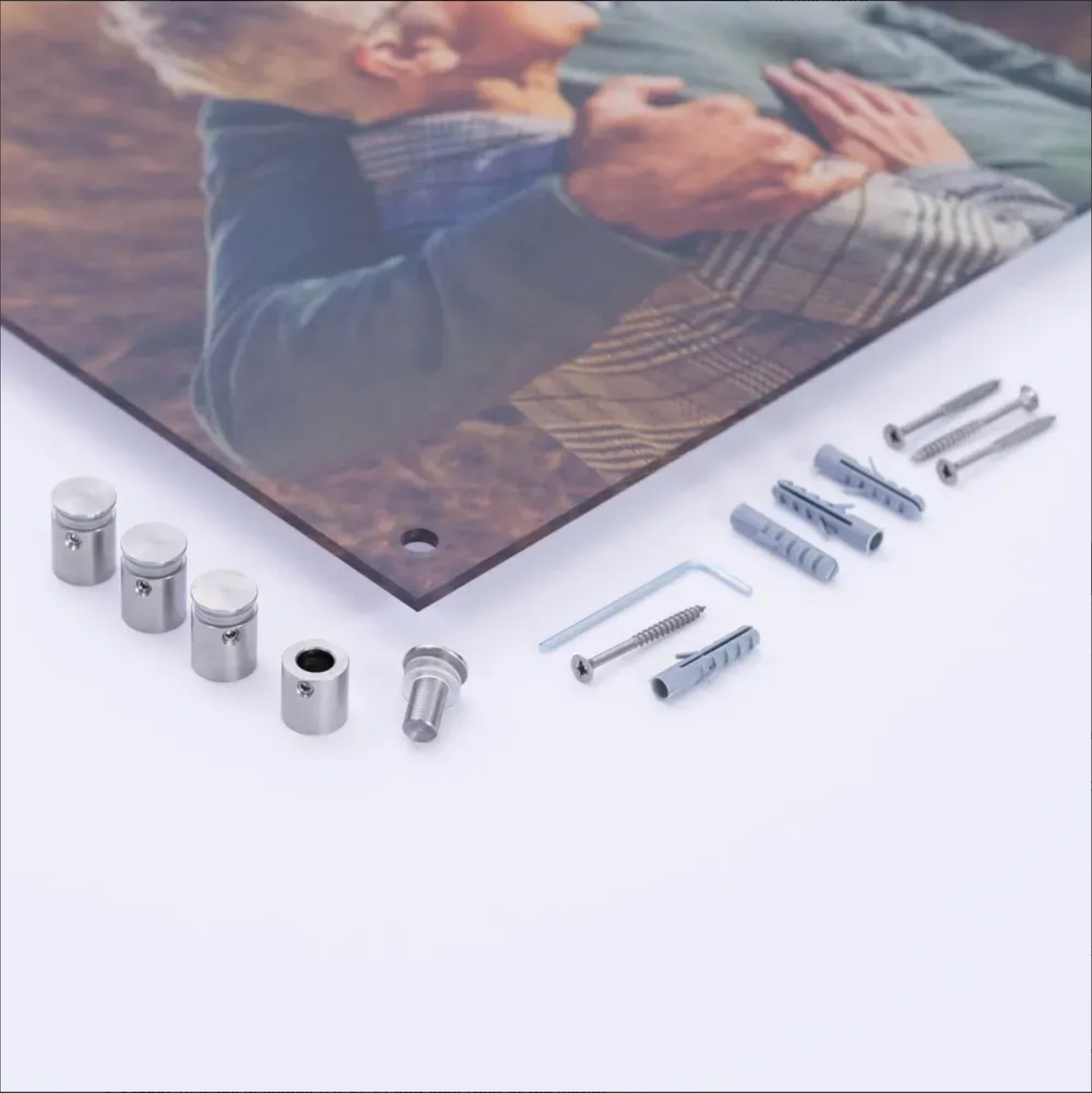 Use the supplied metal screws to attach the 4mm (0.15") Acrylic Prints to the wall.
